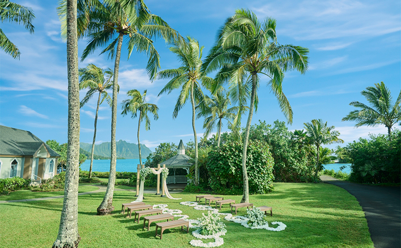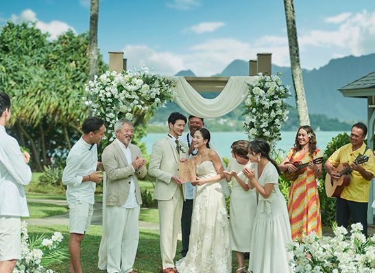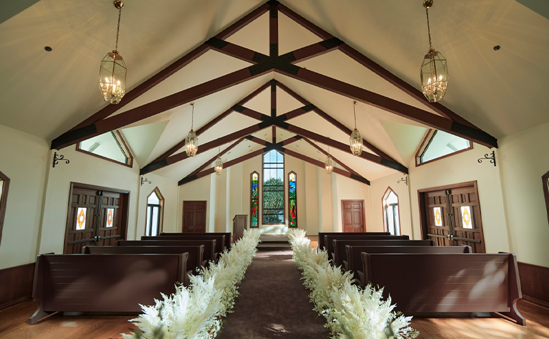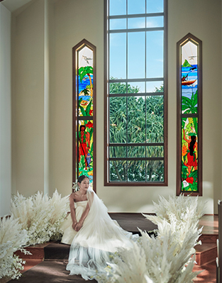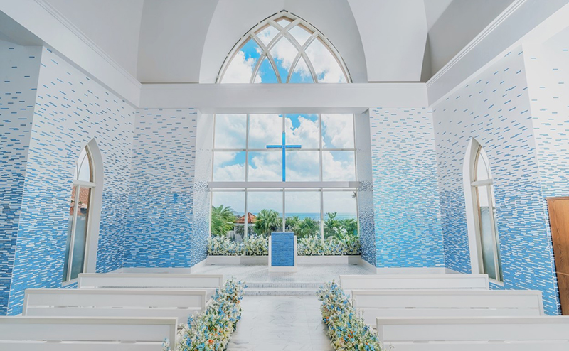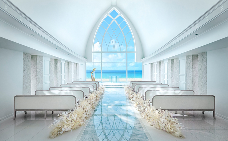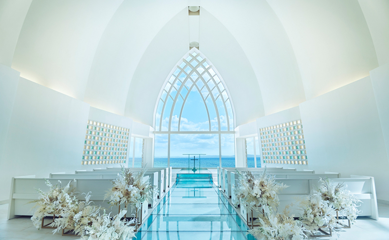 青い空と海に囲まれたチャペルで、非日常の幸せを感じられるリゾートウェディング。挙式をはじめ、おふたりの衣裳やヘアメイクまでトータルでプランをご提案いたします。